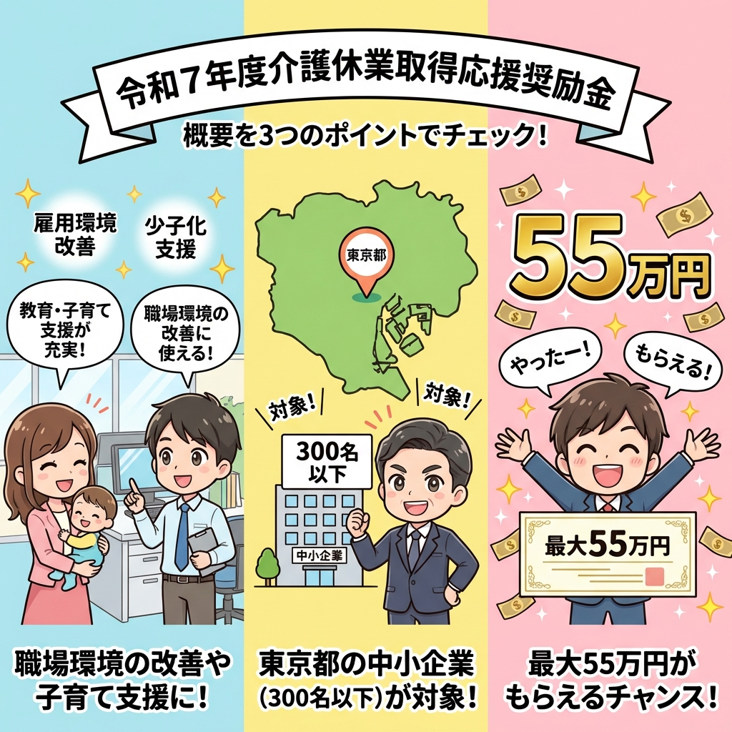 従業員が介護休業を取得して職場に戻ってくる。そのときに職場環境を整えた企業に、東京都が奨励金を出してくれる制度です。