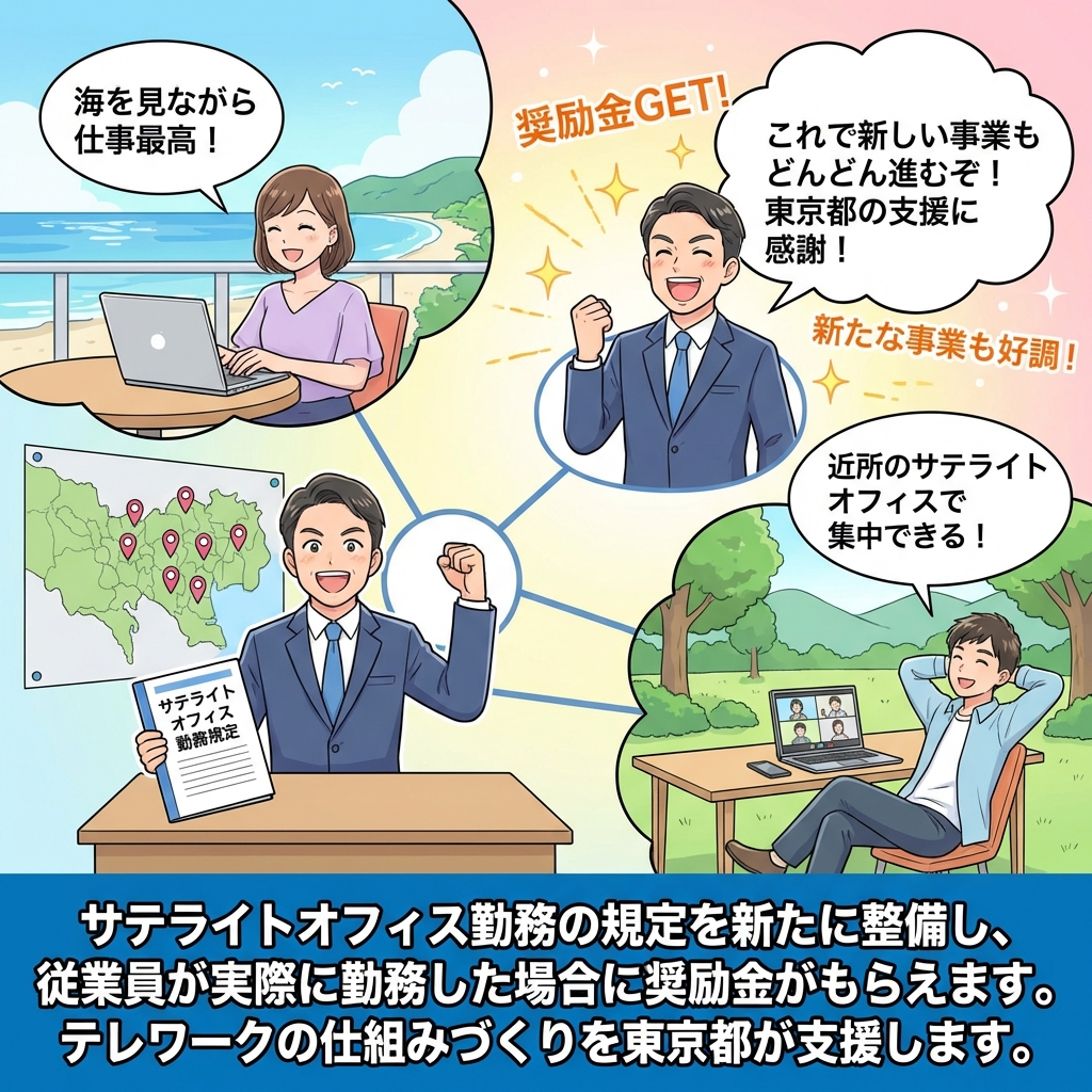 そんな東京の企業の方へ。サテライトオフィス勤務導入奨励金を使えば、勤務ルールの整備をサポートしてもらえます。