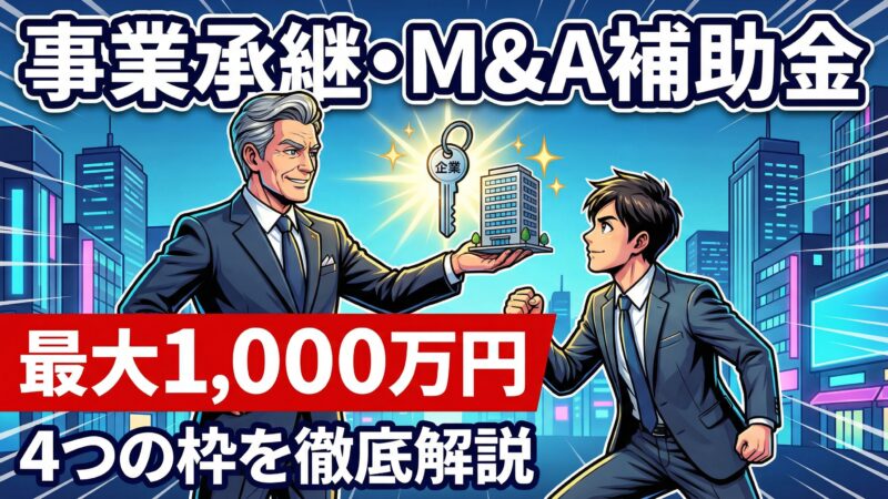 2025年の制度改正で、旧「事業承継・引継ぎ補助金」から名称が変更されました。枠も3つから4つに拡充。補助上限額も引き上げられています。ネットで旧名称の情報が出てくることがありますが、現在の正式名称は「事業承継・M&A補助金」です。